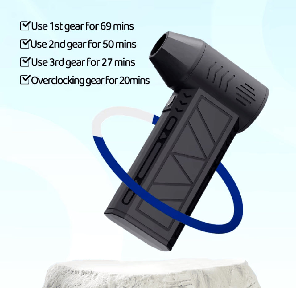 Smart LED Indicators: The fan has built-in LED indicators to show gear modes, battery status, and charging progress. The overclocking mode offers the highest speed, reaching up to 130,000 rpm, ensuring powerful and efficient airflow.